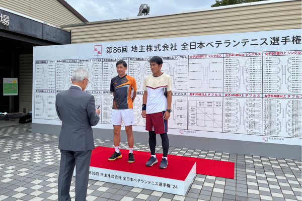 株式会社ルーセント(本社:千葉県柏市、代表取締役社長:中野吉広)の運営するテニスクラブ「ルーセントテニスクラブ八尾」でコーチを務める山根紀生選手が、2024年10月1日~8日に福岡県福岡市の「博多の森テニス競技場」で開催された「2024年 地主株式会社 第86回全日本ベテランテニス選手権_福岡」に出場し、男子ダブルス55歳以上の部で準優勝いたしました(ペア:衛藤斉(AtoZ))。